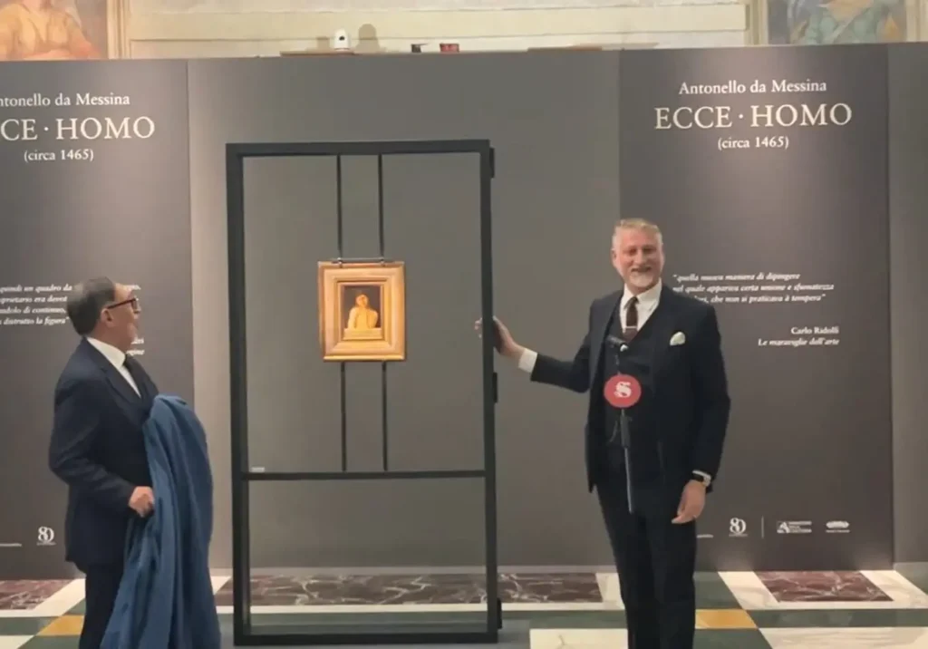 ROMA (ITALPRESS) – L’Ecce Homo di Antonello da Messina, acquistato dallo Stato italiano, è stato svelato a Palazzo della Minerva, sede della Biblioteca del Senato, nella Sala Capitolare, nella quale sarà fruibile gratuitamente da domani 27 marzo e fino al 7 aprile. “Siamo una rete di istituzioni che a vario grado si occupano di restituire al patrimonio e alla disponibilità dei cittadini italiani un’opera di così grande valore”, ha detto il ministro della Cultura, Alessandro Giuli, dopo aver ringraziato ITA Airways. Il ministro ha poi descritto il momento in cui da Sotheby’s è stato mostrato il quadro, ricordando come si sia creato “un clima silenzioso di rispetto per qualcosa che ha una sua unicità. Un rispetto profondamente sentito di fronte a un’opera che sintetizza il nostro programma come ministero della Cultura”.