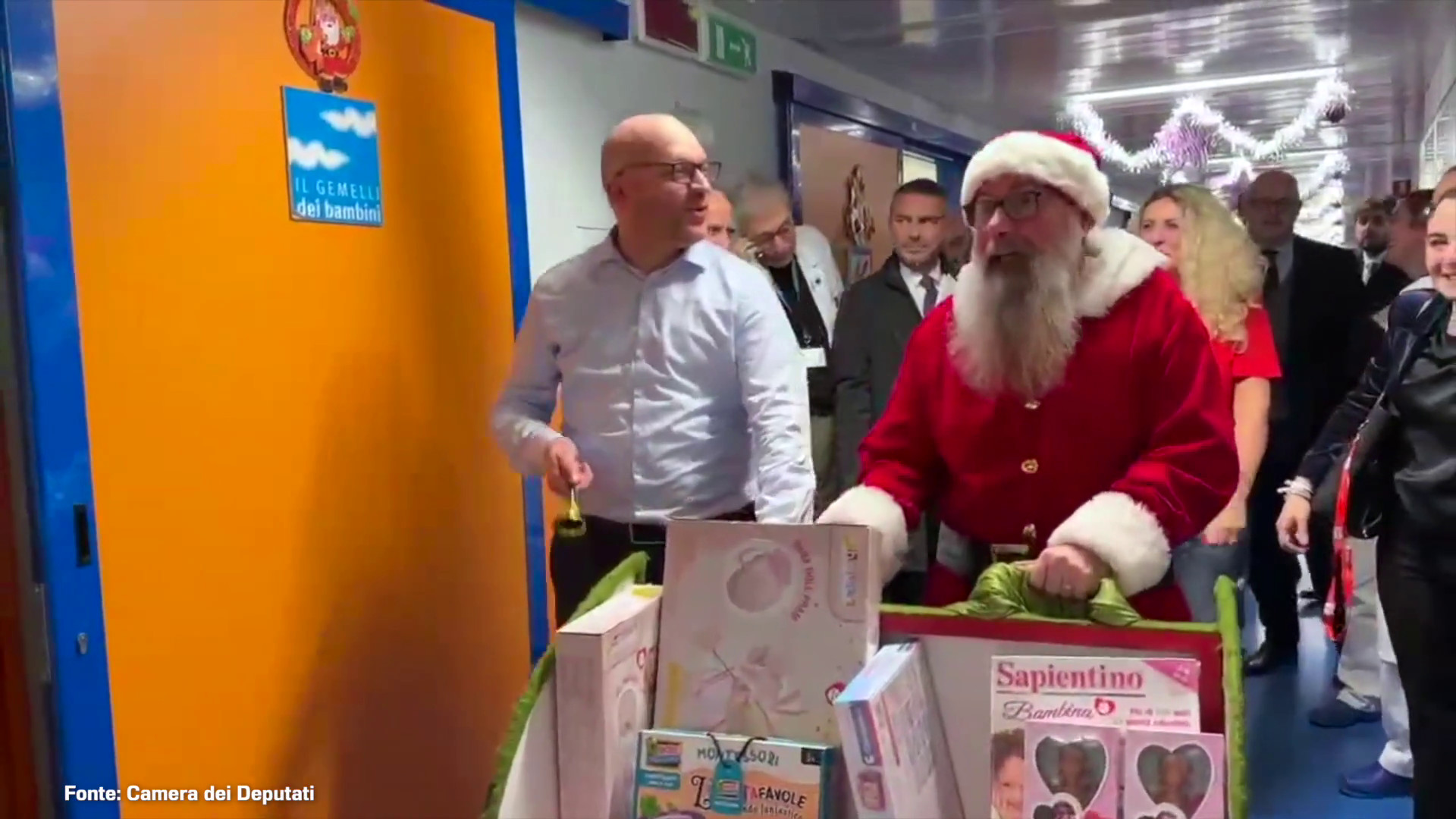 ROMA (ITALPRESS) – In vista del Natale, il Presidente della Camera dei deputati, Lorenzo Fontana, ha trascorso un pomeriggio tra i giovani pazienti del reparto di neuropsichiatria infantile del Policlinico universitario “Agostino Gemelli” di Roma. Accompagnato da un volontario, Luciano Micello, che per l’occasione ha vestito i panni di Babbo Natale, ha portato doni ai bambini incontrando anche le famiglie, gli altri volontari e i fondatori dell’associazione “Lollo 10”, Maurizio e Severina Caschera. La Onlus si occupa di aiutare le famiglie dei bambini ricoverati.