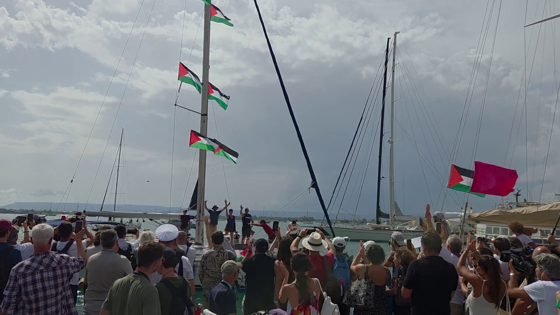 SIRACUSA (ITALPRESS) – Sono arrivate al porto di Siracusa, dopo uno scalo ad Augusta, le 17 imbarcazioni siciliane dirette a unirsi alla Global Sumud Flotilla in navigazione verso la Striscia di Gaza. Le barche ritorneranno ad Augusta, da dove salperanno domani all’alba per iniziare la traversata. Gli equipaggi sono sbarcati alla Marina di Siracusa tra gli applausi dei manifestanti e dei cittadini, muniti di bandiere palestinesi per sostenere la popolazione di Gaza. Tra gli slogan e gli striscioni le parole “Fermiamo Israele”, “Free Palestine”, “No genocidio”. Complessivamente la Global Sumud Flottila dovrebbe essere formata da circa 55 imbarcazioni. Sulla banchina, ad accogliere le barche, anche il presidente dell’Ucoii – Unione delle Comunità Islamiche, Yassine Lafram, accompagnato dal vice presidente Kheit Abdelhafid, imam della moschea di Catania. Le imbarcazioni salpate da Siracusa si ritireranno di nuovo ad Augusta per salpare domani mattina all’alba. In partenza c’è anche la Life Support di Emergency. La nave di ricerca e soccorso dell’Ong fondata da Gino Strada sarà l’ultima a partire delle barche italiane dirette a Gaza, avrà il ruolo di nave osservatrice e offrirà supporto medico e logistico alle navi che dovessero averne necessità. xo5/vbo/gtr